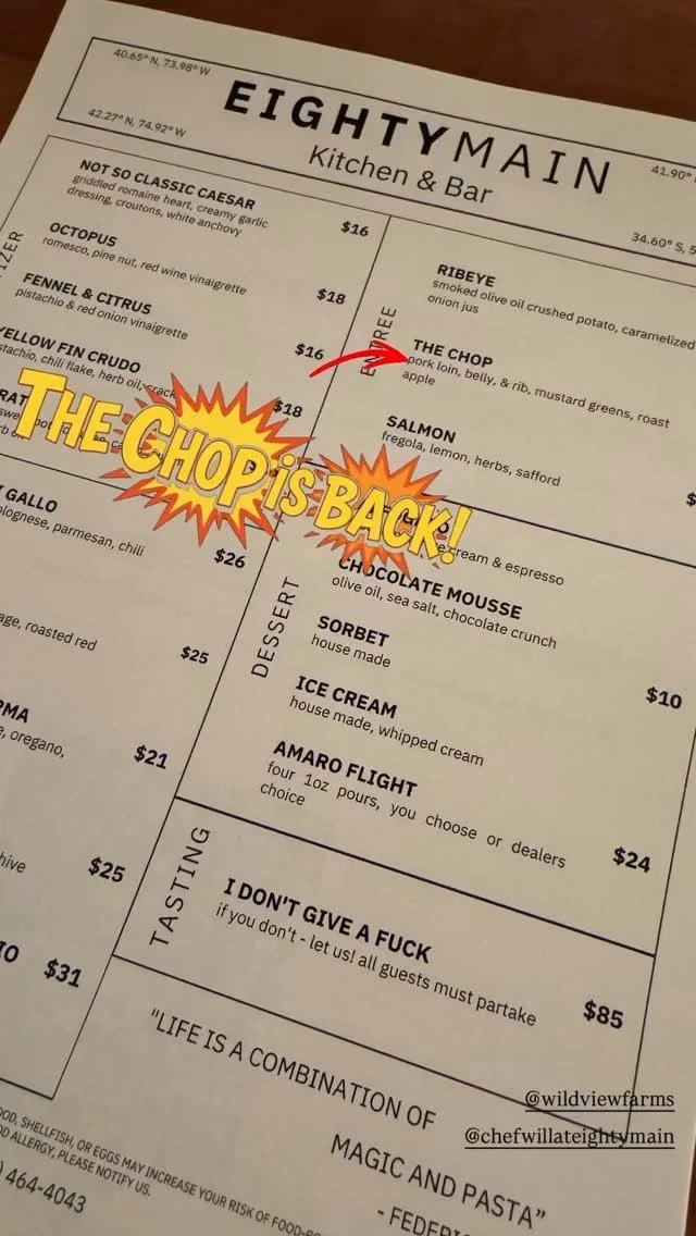 CAREFULLY CRAFTED AND THOUGHTFULLY EXECUTED IN THE CATSKILL MOUNTAINS BY CHEF WILL JOHNSON.